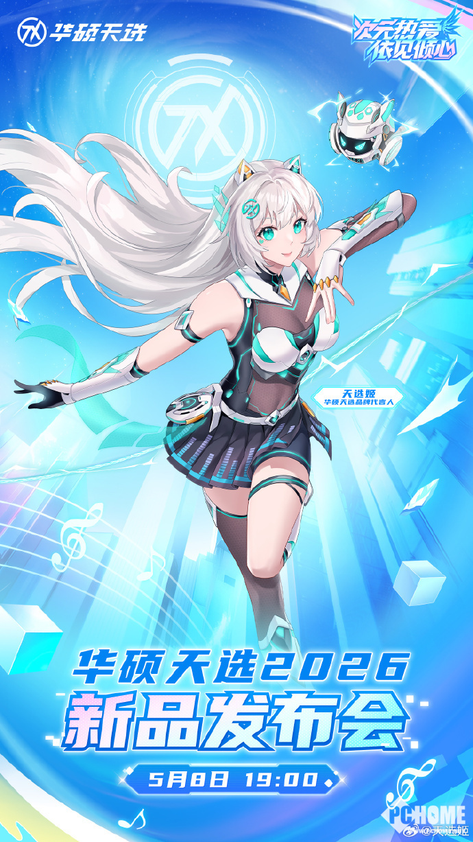PChome 4月27日消息,华硕天选品牌于今日正式宣布,其2026年新品发布会将于5月8日19:00在线上举行。此次发布会以“次元热爱 依见倾心”为主题,将面向全球用户直播,天选7系列以及Pro分支机型将正式亮相。