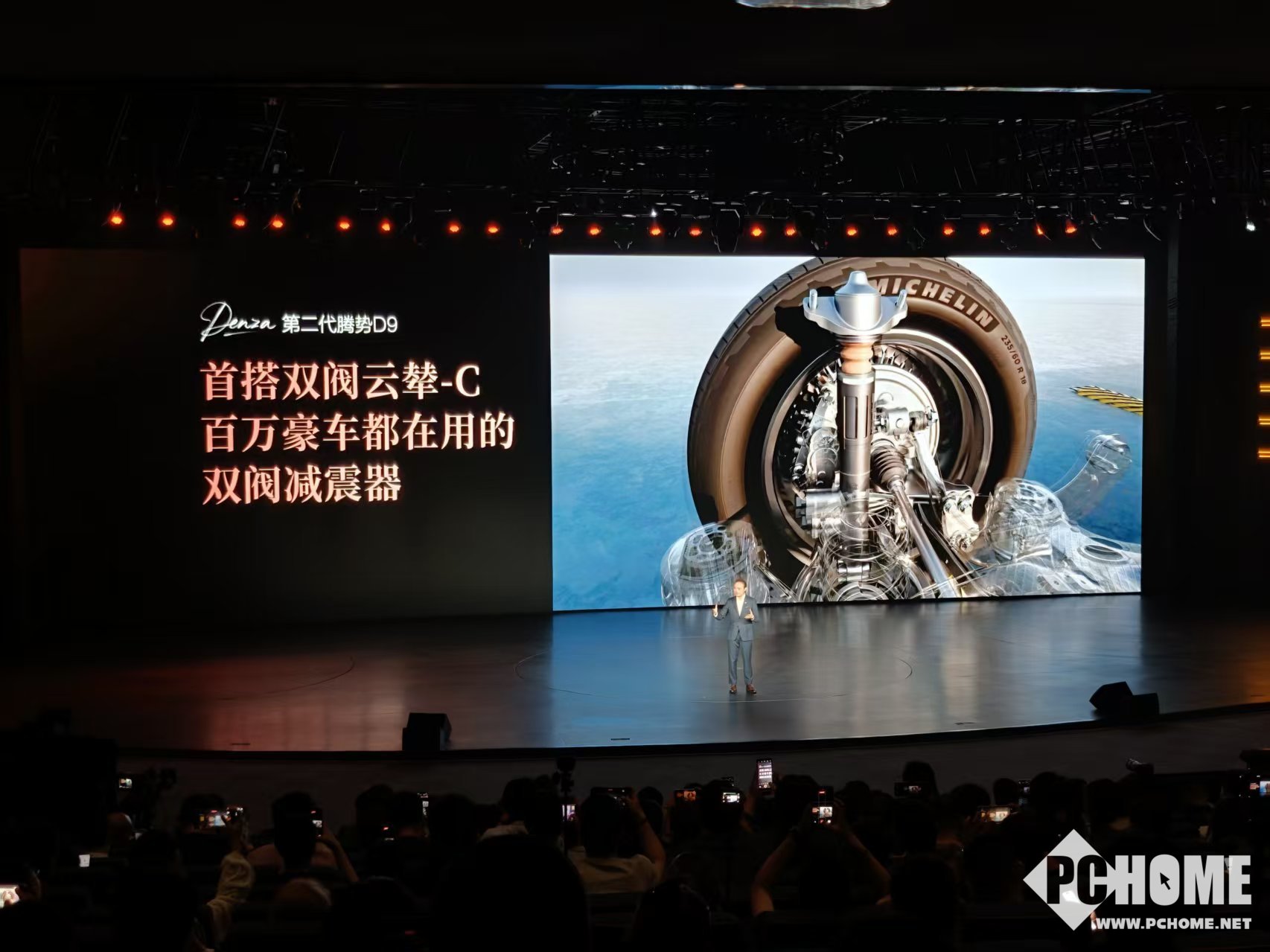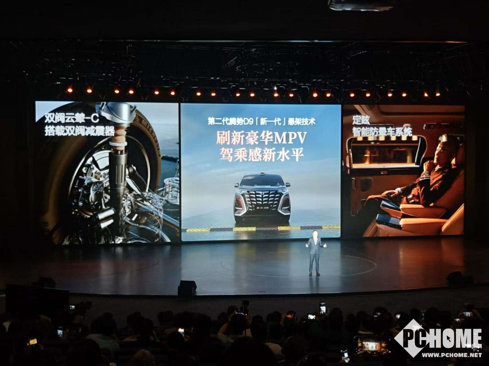 PChome 4月27日消息,第二代腾势D9正式上市,全系标配双阀云辇-C智能减震器,融合路面预瞄2.0技术,以毫秒级阻尼调节能力,打造“魔毯级”驾乘舒适性,从根源缓解晕车。
