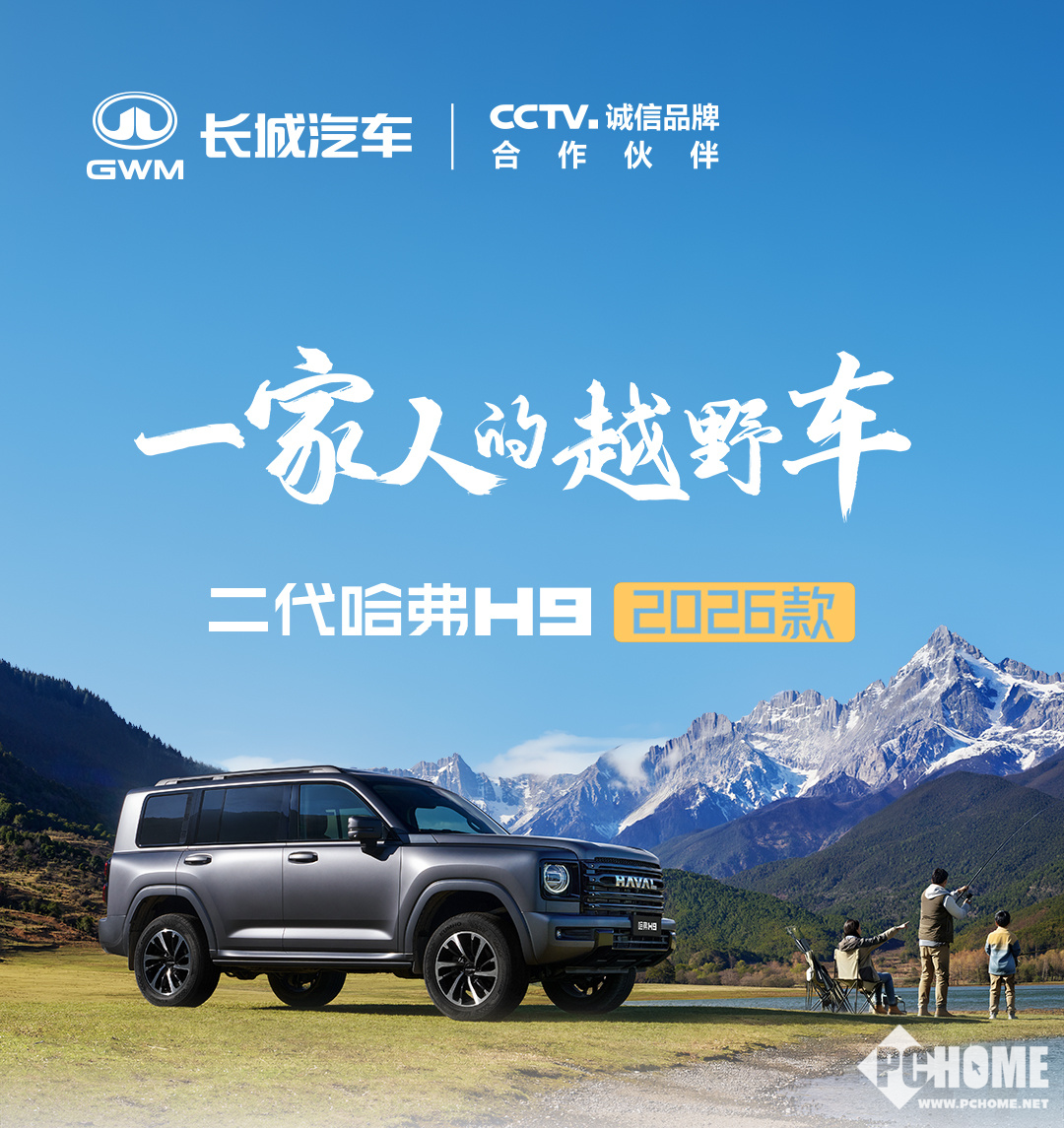 PChome 4月28日消息,长城汽车宣布二代哈弗H9 2026款正式上市,官方指导价19.99万元-24.79万元,限时换新价17.49万元-22.29万元,较老款式的车型起售价将进一步下降,这为家庭用户带来更具性价比的硬派越野选择。