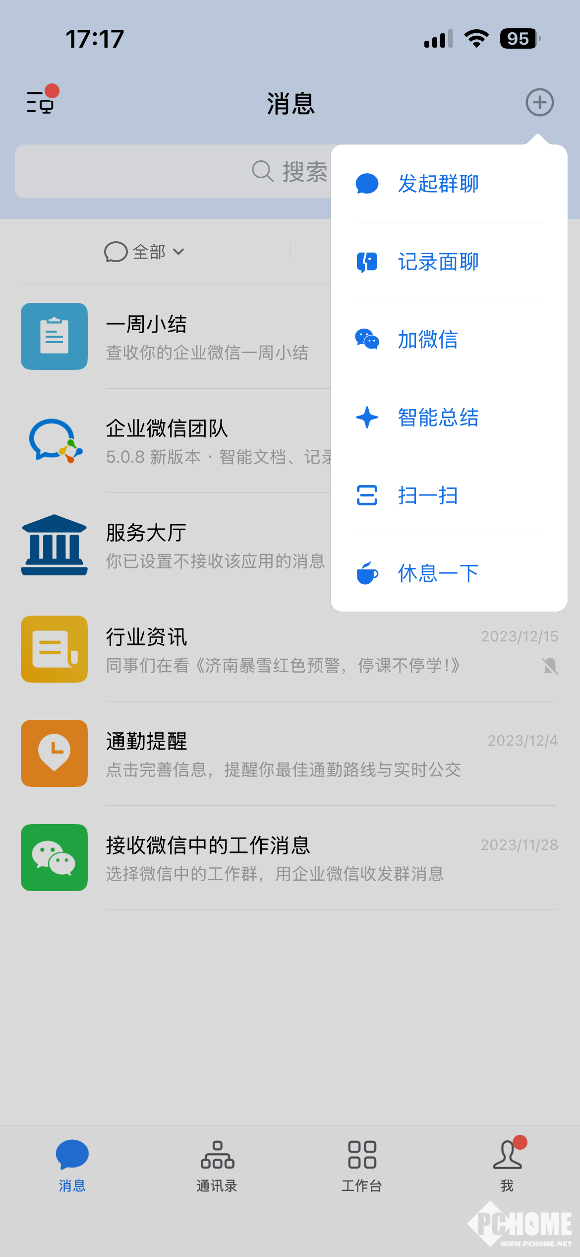 PChome 4月28日消息,企业微信在5.0.8版本中灰度测试上线“记录面聊”功能,用户只需点击手机端右上角“+”号选择“记录面聊”,即可在线会议中实现语音实时转文字,大幅度提升了办公效率。