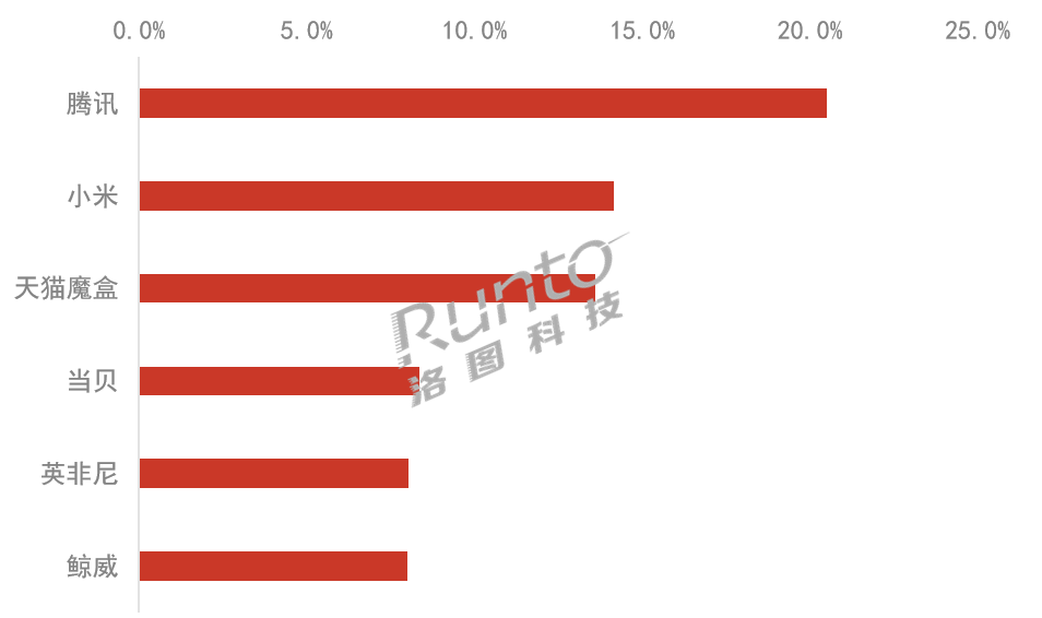 在品牌竞争格局中,腾讯以20.5%的市场份额领跑主流电商渠道,小米与天猫魔盒分别以14.1%和13.6%的份额位列第二、三位。腾讯极光盒子依托视频平台、云服务及游戏内容资源,在内容生态与超高清技术上构筑了核心优势。其与湃科技联合推出的7系列产品,在500元以上高端市场占据近五成份额,成功摆脱低端价格战。
