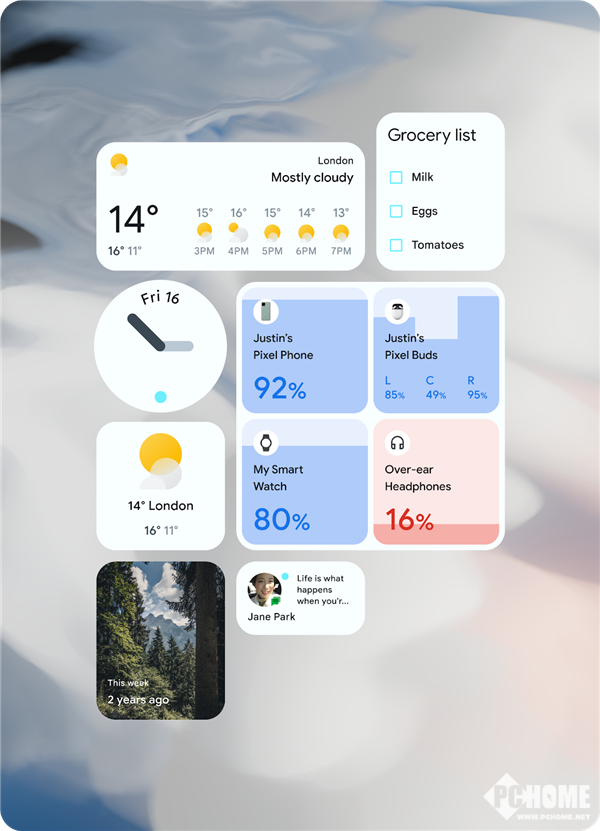 此外,新版本还提供了重新设计的小部件,更新了通知设计,增加了新的“拉伸”过度滚动效果,还为所有应用引入了启动画面。