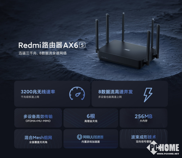 今日上午,Redmi路由器AX6S正式开售,售价329元。这款路由器支持8数据流瞬时并发,相比4数据流信号收发效率提升一倍,效率更高,可同时容纳更多设备,上网更加流畅。而且最高速率高达3202Mbps,相比主流AC1200路由器速度提升174%。