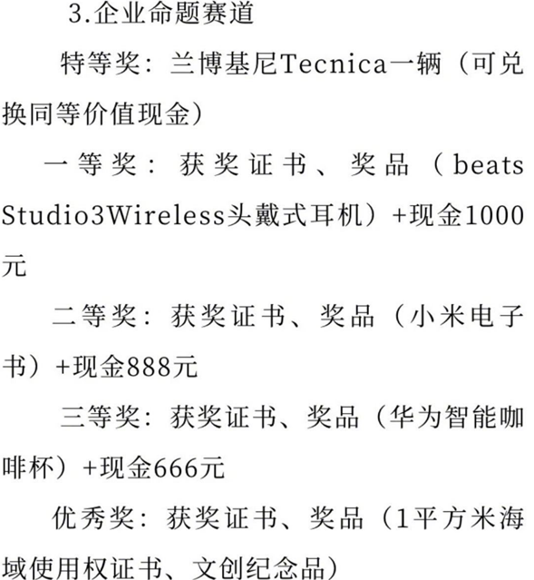 据悉,企业命题赛道特等奖是由赞助单位提供,并不是学校购买,但有条件领取,即特等奖设计方案经公司采用后,相关产品销售量达到总额80%以上,即可获取奖励,相关设计方案版权为赞助单位所有,最终解释权归赞助单位所有。