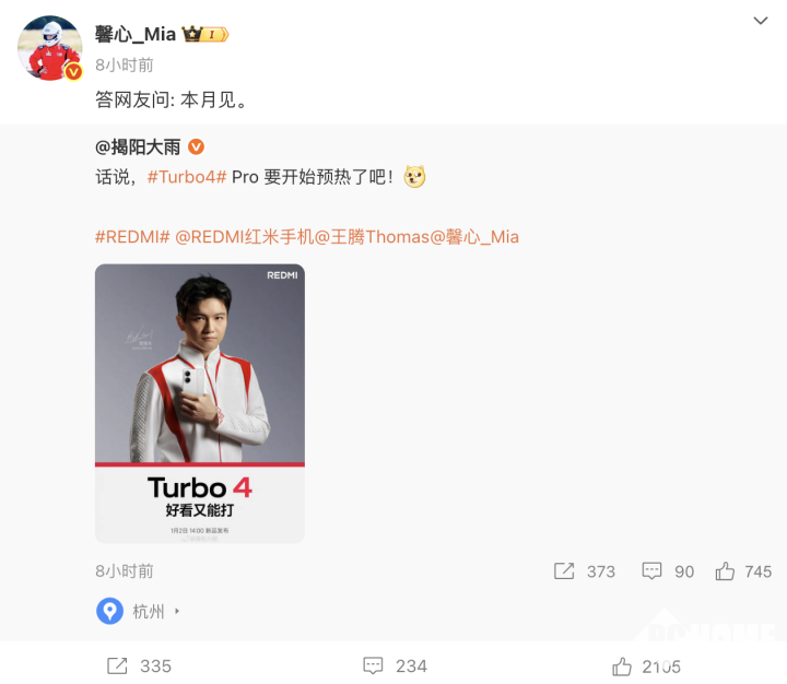 2025年4月14日,面对网友询问的小米REDMI Turbo 4 Pro是否将开启预热的问题,REDMI产品经理胡馨心在社交媒体平台表示,“本月见。”这也意味着,小米REDMI将于4月发布Turbo 4 Pro手机。