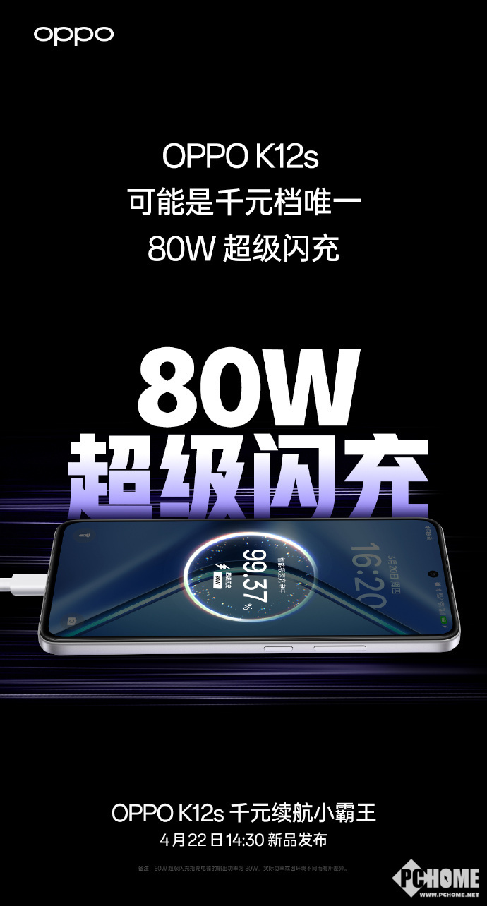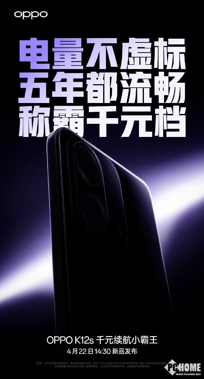 OPPO已经官宣,将于2025年4月22日14:30正式发布全新的OPPO K12s手机,该产品的宣传口号为“千元续航小霸王”。