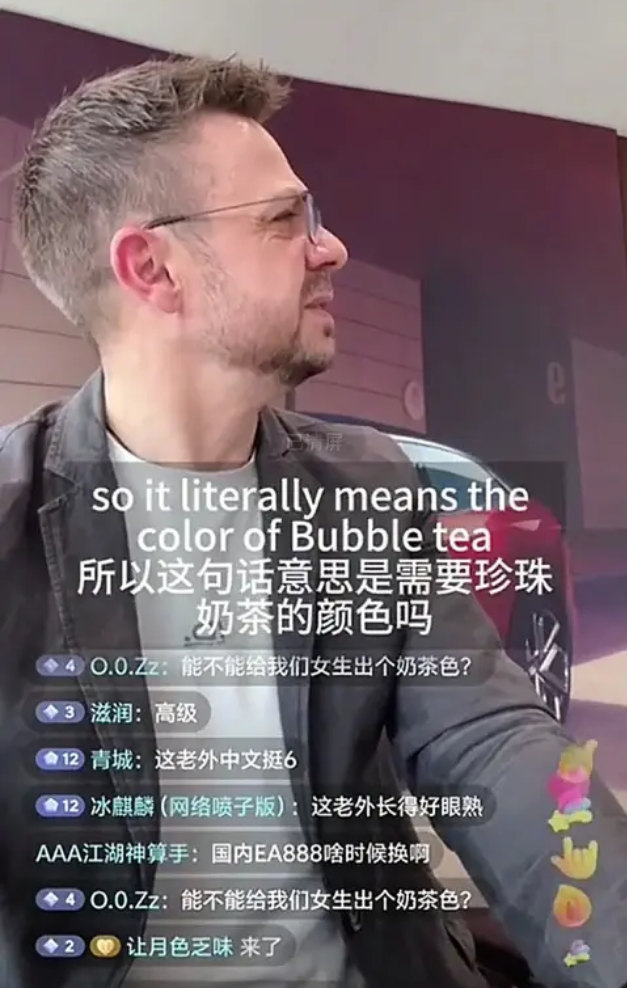 此前,范必欧FabioStoelzel也用中文直播,直播中认真听取网友建议,并且网友称“非常听劝”。对网友们说的建议他也是一条一条的记录,网友称,挺上道。例如,直播时有网友说想要个“奶茶色”,直播时他说,要找一下德国的油漆库,可能会产生额外成本。但是,对买车的人来说会免费送,成本自己担着。最后,他还真增加两个颜色,其中之一就有“暖云白”。
