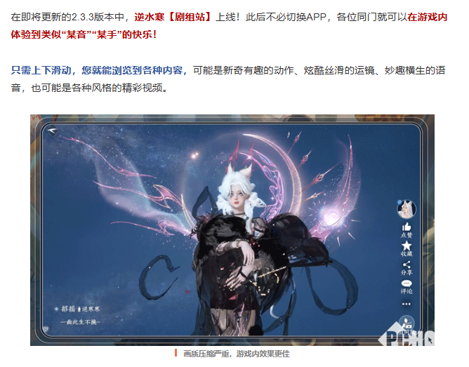 网易手游《逆水寒》即将在更新的2.3.3版本中上线逆水寒【剧组站】,此后不用切换App就可以在游戏内体验到类似于热门短视频平台的快乐。2.3.3版本计划将于4月25日更新,目前已开启预下载。