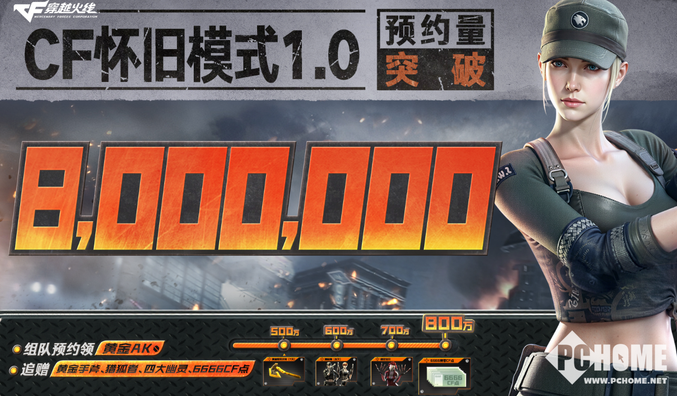 据此前消息,截止4月17日《穿越火线》怀旧模式1.0已预约超过800万人。