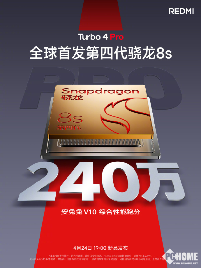 REDMI已经官宣,将于2025年4月24日举办新品发布会,正式发布全新的Turbo 4 Pro手机。发布会开始前,REDMI频频爆料Turbo 4 Pro的配置信息。