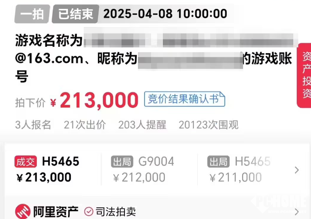 4月23日消息,网络游戏《梦三国2》的一个等级为“至尊11”的游戏账号于4月8日被以21.3万元的价格在阿里拍卖平台拍卖成功。