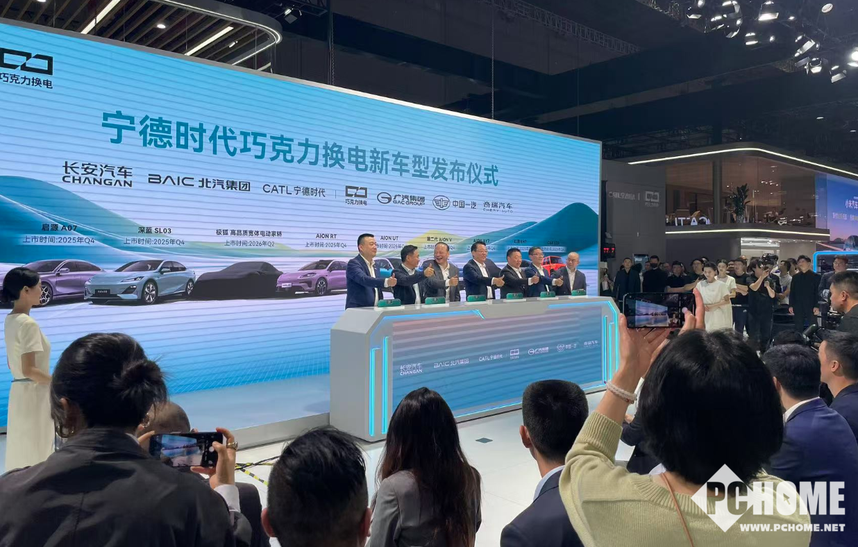 2025年4月23日,宁德时代于2025上海车展,举办巧克力换电新车型发布仪式,并与广汽集团签署全面战略合作协议。活动现场,宁德时代巧克力换电与一汽、长安、北汽、奇瑞、广汽五大车企共同推出了10款巧克力换电新车型。