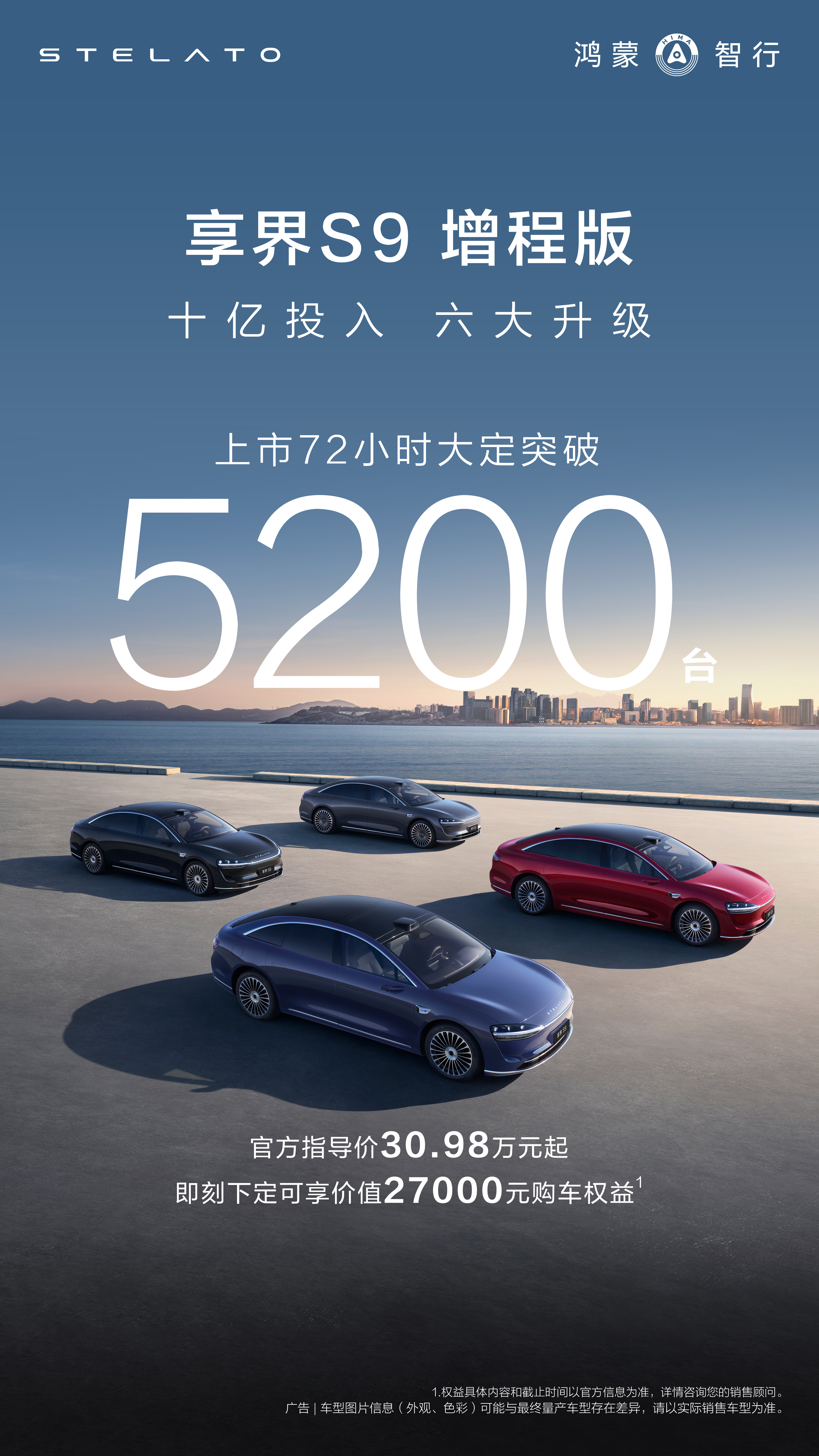 在续航能力方面,享界 S9还搭载华为雪鸮智能增程系统,CLTC综合续航里程最高可达1355公里,续航扎实里程不焦虑。余承东表示,在海南岛进行环岛续航实测,满电满油极限跑到1300多公里,媒体实测续航里程达成率96.5%。据悉,享界 S9增程版售价30.98万元起,上市72小时大定突破5200台。