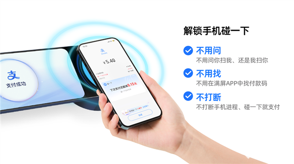 据了解,支付宝碰一下是2024年7月8日推出的支付功能。用户在手机解锁且NFC开启时,碰一下支付宝支付设备,跳转确认页就能完成支付。其设备有手持和台式,自带4G网络、自动对接收银系统。支持多种支付方式与各主流系统,场景拓展至300种 。