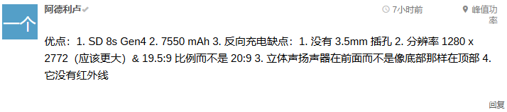 另外,有网友指出,该款新机没有3.5mm插孔以及没有红外线等等问题。