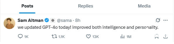 2025年4月25日,OpenAI的首席执行官山姆·奥斯特在社交媒体平台称,模型已进行进一步的改进与升级,主要体现在智能表现与个性化两个方面。
