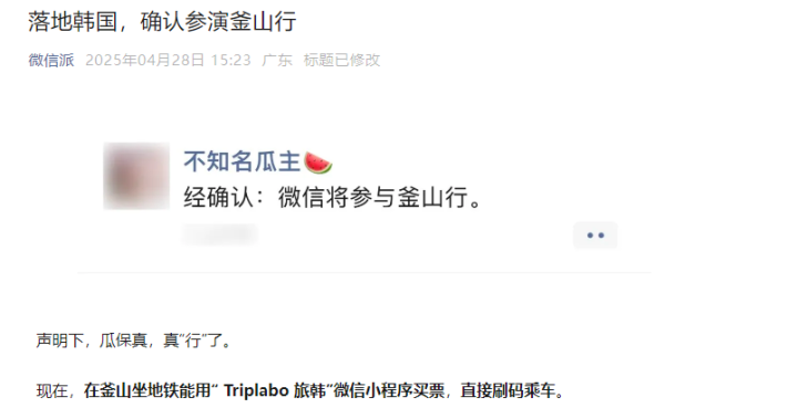 韩国釜山坐地铁现在支持“ Triplabo旅韩”微信小程序买票,可直接刷码乘车。