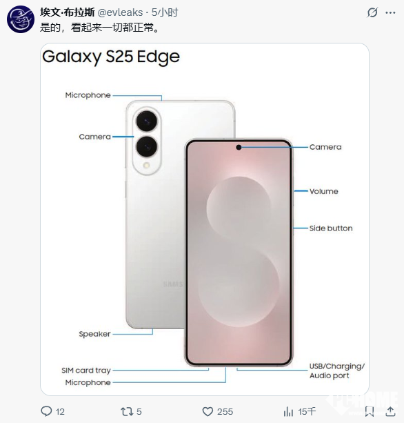 爆料人@evleaks今天在X平台发布了一篇有关三星最薄旗舰Galaxy S25 Edge手机的宣传物料图的推文,展示了该机的组件布局。