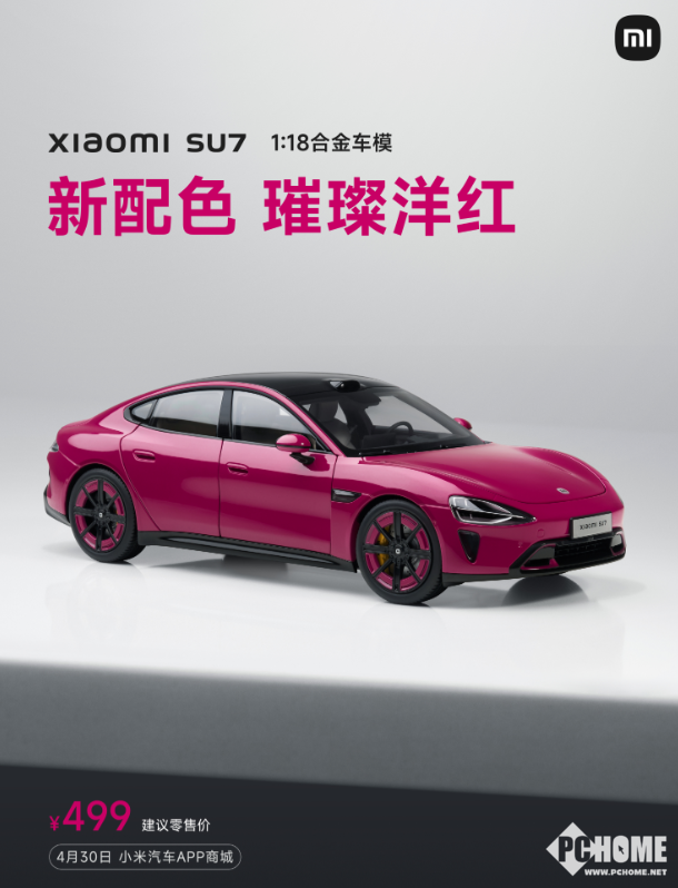 2025年4月29日,小米官方称,小米SU7璀璨洋红将于明天上午10点在小米汽车APP开售,预售价为499元。