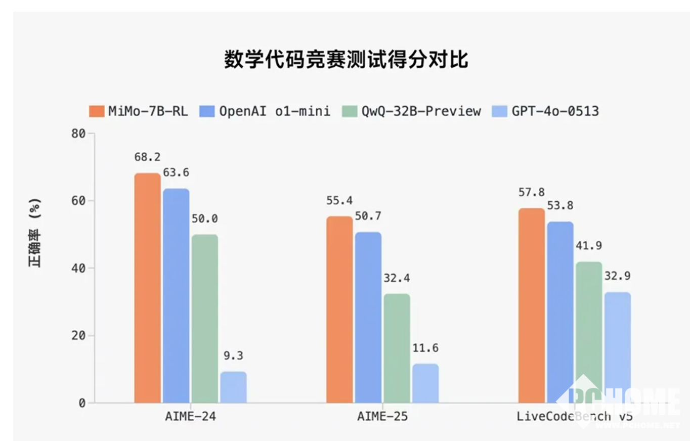 据了解,MiMo来自新成立的“小米大模型Core团队”。在数学推理(AIME24-25)和代码竞赛(LiveCodeBench v5)公开测评集中,MiMo仅用7B的参数规模,超越了OpenAI的闭源推理模型o1-mini,以及阿里Qwen更大规模的开源推理模型QwQ-32B-Preview。