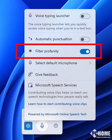 在此次更新中,微软为语音输入引入脏话过滤开关。用户通过按下Win+H键,然后选择设置图标来访问该功能,并点击“过滤脏话”切换按钮以禁用该过滤器。目前这一功能仅限于Windows Insider项目的成员,预计该功能将在未来几个月内向所有用户推出。