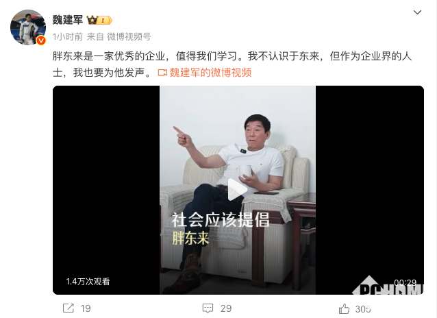 5月6日中午,长城汽车董事长魏建军发布视频力挺胖东来。魏建军表示:“胖东来是一家优秀的企业,值得我们学习。我不认识于东来,但作为企业界的人士,我也要为他发声。”
