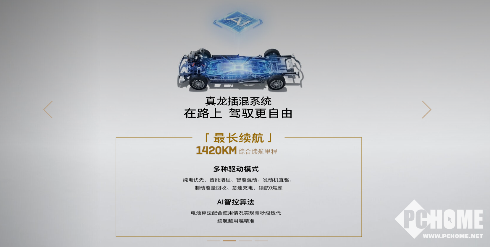 动力系统方面,全系搭载由1.5T混动发动机和奥特能标准的插混电池组成的“真龙”插混系统,以及全栈自研P1P3插混电驱单元。其中1.5T混动发动机采用深度米勒高效燃烧系统,传动方面配备两档DHT电混驱动,电机最大功率可达160千瓦,峰值扭矩为330牛·米,峰值效率高达97.8%。