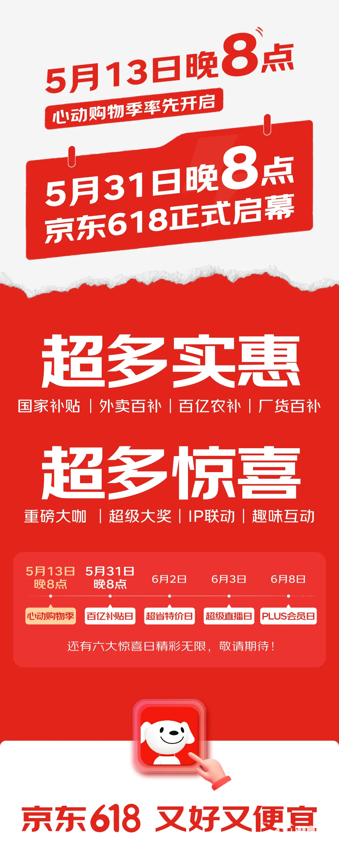 早在5月13日晚8点,心动购物季就将率先开启,为消费者提前送上福利。活动期间,将有国家补贴、外卖百补、百亿农补、厂货百补等超多实惠举措,让消费者切实享受到购物的性价比。