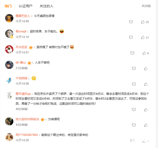 有的网友称:"改用美团了。"还有网友表示理解:“超时免单,东子能处。”在即时配送竞争激烈的当下,如何保障效率与平衡骑手压力,成为京东外卖突围的重要议题。