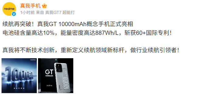 继真我手机在早些时候发布10000mAh电池容量新机之后,今日官方又公布了一些关于该手机的细节。