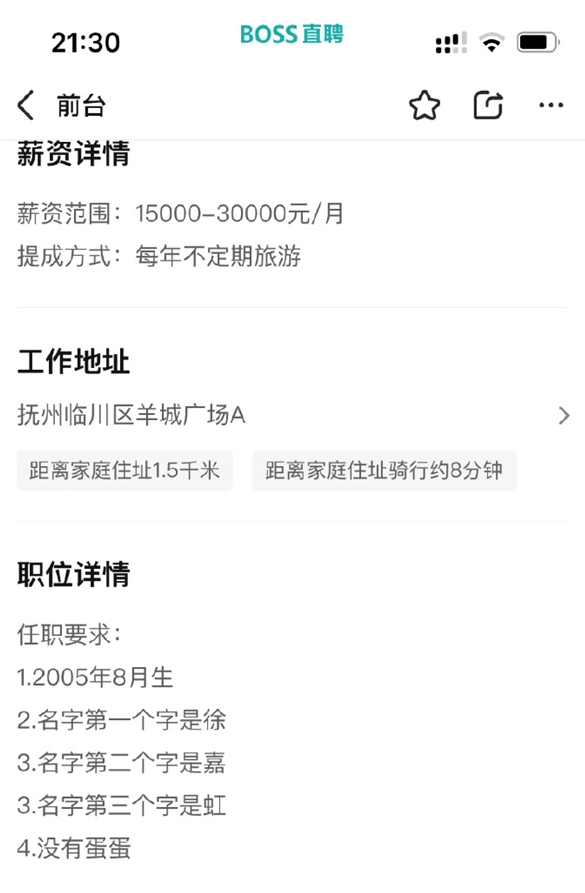 今日,一条“Boss直聘秀恩爱”的词条冲上热搜,原是一则“非主流”Boss直聘招聘信息截图流出,Boss直聘官方客服回应媒体称,“您反馈的问题已经收到,我们会有专员来处理此事”。