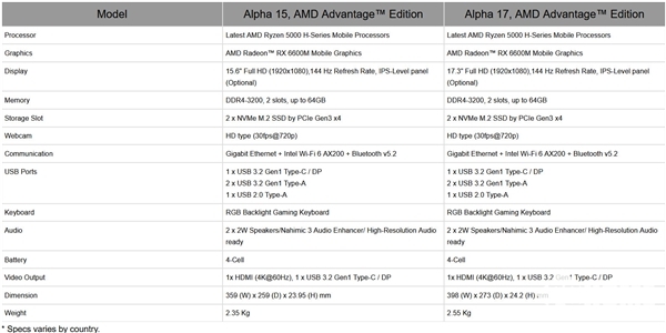 不得不说,与RX 6系列游戏本相比,A卡游戏本实在是太少了,简直就是惨不忍睹,首批只有华硕的ROG魔霸5R、惠普的暗影精灵7,以及微星。现在,微星正式发布了RX 6000M游戏本,共有三款不同型号,分别是升级版的先锋Alpha 15/17、全新的Delta 15。