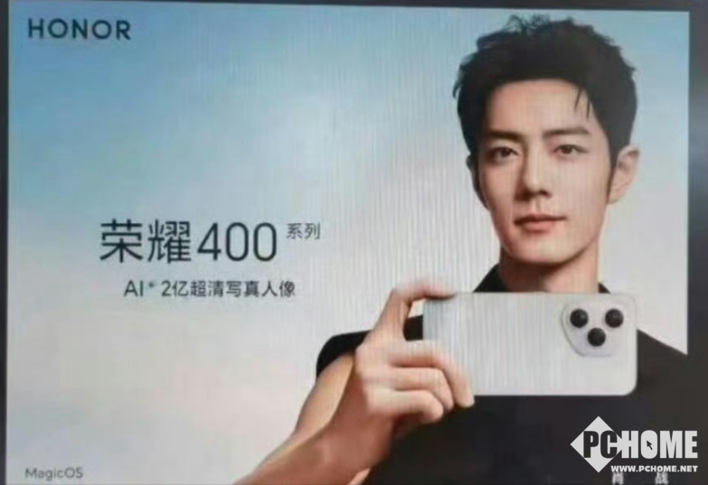 近日荣耀400系列海报展出在社交平台上传播火热,海报显示,荣耀400系列演员肖战代言,手机主打AI 2亿像素超清写真人像。