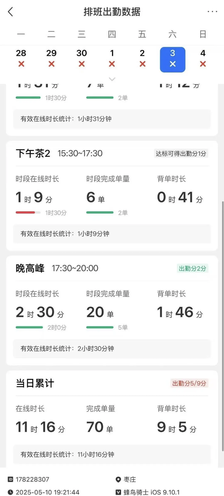 袁鹏在饿了么长安路店做骑手5年,梁军做了3年。袁鹏跑单软件显示,他在离世前3天,跑单数分别为48单、59单、70单,在线时间均超11小时。梁军则常上一天一夜的班,休息一天后再接着上。