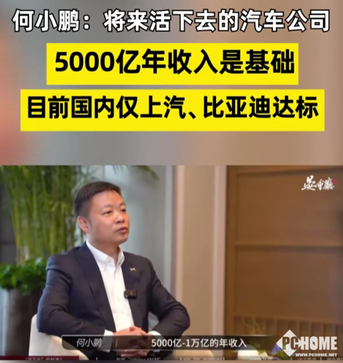 何小鹏表示,也许将来“活下去”的汽车公司,5000亿至1万亿的年收入是最差最基础的。