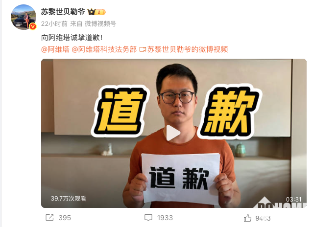 2025年5月13日,阿维塔法务官微发文,宣布起诉自媒体“苏黎世贝勒爷”,并索赔1000万元。