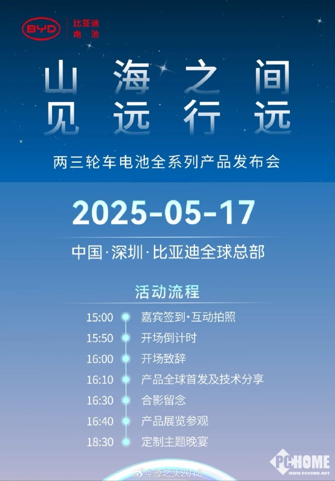 据博主“源之头2018”爆料称,比亚迪将于5月17日举办两三轮车电池全系列产品发布会,并喊出“铅酸退场、铁锂新启”的口号。
