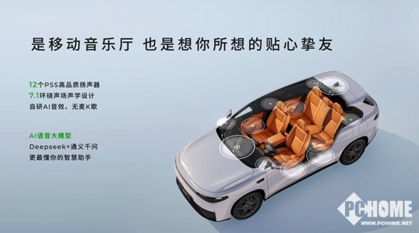 外观内饰样式不变,延续零跑家族“科技自然美学”设计语言,新增B10同款“曦露紫”车色,采用默克的高端系列半透明天然珠光粉,并升级了电动隐藏门把手。车内换装高通骁龙8295满血版芯片驱动,打造全新实时感知3D桌面、双屏SR环境模拟及智慧分屏交互,支持DeepSeek+通义千问双模型AI语音助手。车内提供12个PSS高品质扬声器,拥有7.1环绕声场声学设计,支持无麦K歌等娱乐功能,还拥有移动大躺椅,超级大床等模式,全车多达26处储物空间,还有行业首创的婴幼儿织物操作平台,满足家用各种实用场景。