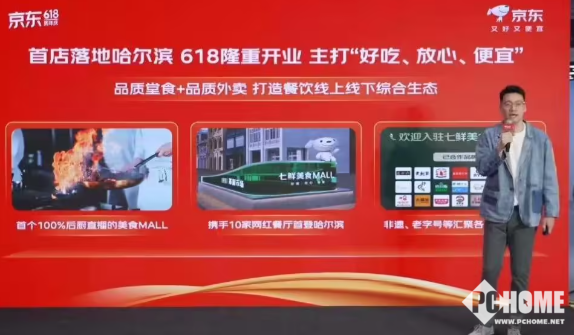 今日,在“京东618惊喜开放日”活动中,京东正式发布餐饮实体基础设施品牌“七鲜美食MALL",首店地址在哈尔滨,将在今年618盛大开业,主打“好吃、放心、便宜”。