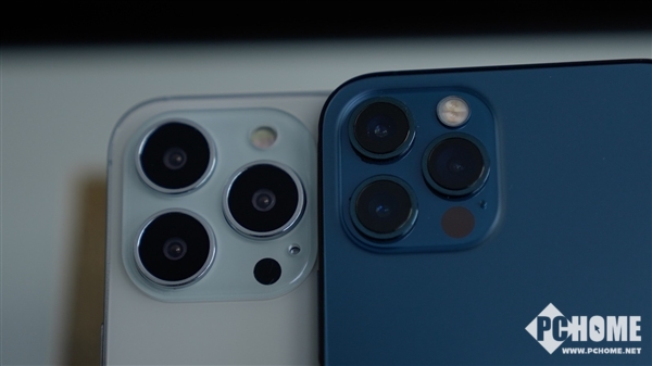 如果综合对比的话,你能清楚的看到一个调整,那就是iPhone 13整个系列的后置主摄像头都变的更抢眼了,这也是跟iPhone 12最直观的区别,特别是iPhone 13 Pro 机模上的摄像头凸起明显大于iPhone 12 Pro,所以广角和超广角镜头的尺寸都显得更大。