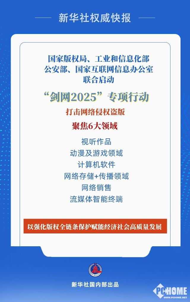 为进一步加强网络版权保护,国家版权局会同工业和信息化部、公安部、国家互联网信息办公室,近日联合启动“剑网2025”专项行动。