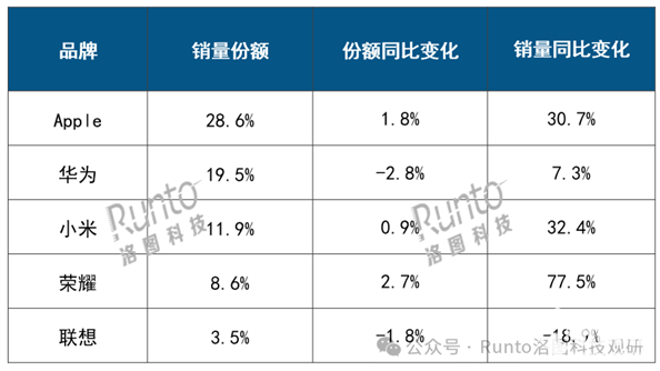 苹果以28.6%的销量份额居传统主流电商首位,相较于2024年同期上涨了1.8个百分点,其销量同比更是大幅上涨30.7%。荣耀平板成为本季度线上销量涨幅最为突出的品牌,其销量涨幅高达77.5%。