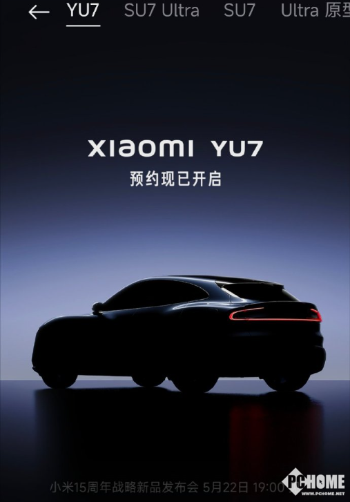 2025年5月19日,小米汽车官方发布消息,小米首款SUV小米YU7,中文名“小米御7”现已开启预约咨询,新款车型已出现在小米汽车APP。今天早些时候,官方也宣布5月22日晚7点将迎来“小米战略新品发布会”。