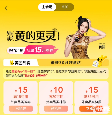 据悉,美团外卖即日起上线“每日大咖”活动,通过美团App“扫一扫”任意数字“0”、任意文字“美团外卖”、“美团袋鼠Logo”进入活动页面,就有机会获得“扫0抢15减15元神券”。
