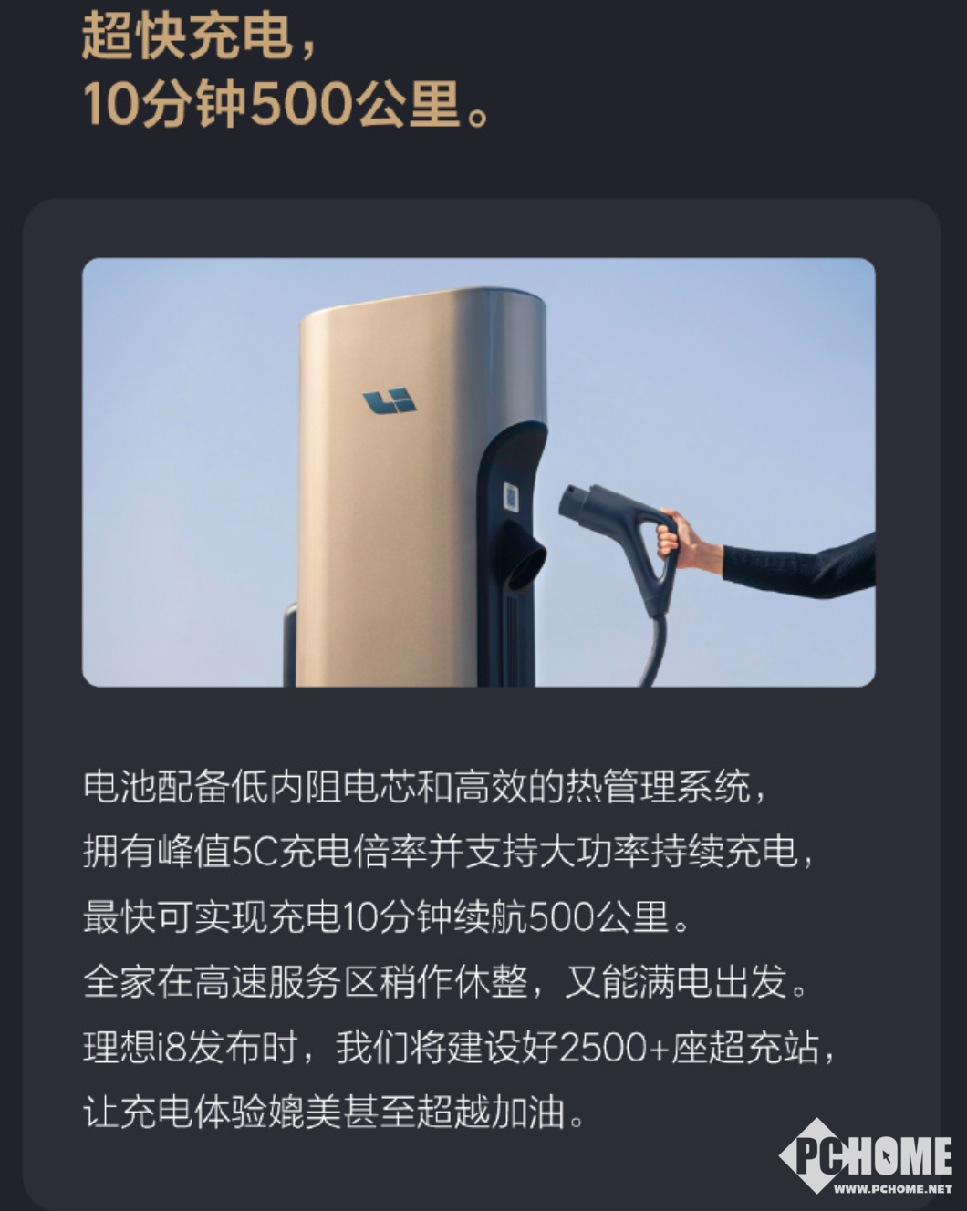 充电速度是理想i8另一大优势,电池配备低内阻电芯和高效热管理系统,拥有峰值5C充电倍率,支持大功率持续充电,最快10分钟就能增加500公里续航。