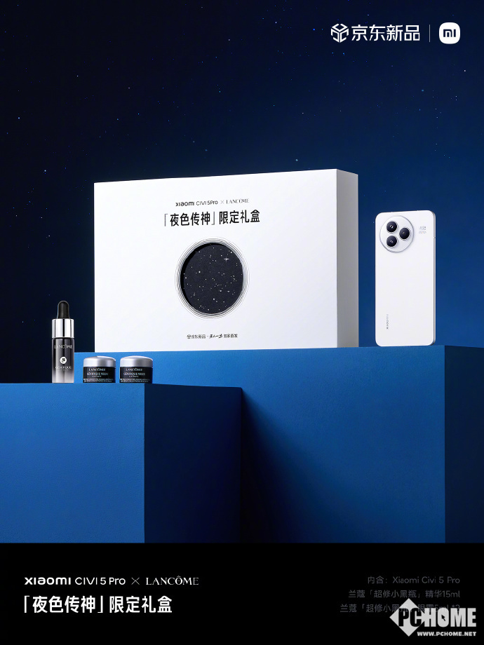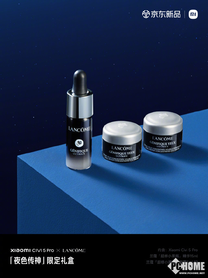 据悉,500套“夜色传神”限定礼盒中,除了一部小米Civi 5 Pro手机以外,还附赠1瓶15ml兰蔻超修小黑瓶精华和2瓶5ml同系列眼霜。买小米手机赠高端护肤套装,这算是手机行业里独一份的新鲜事。