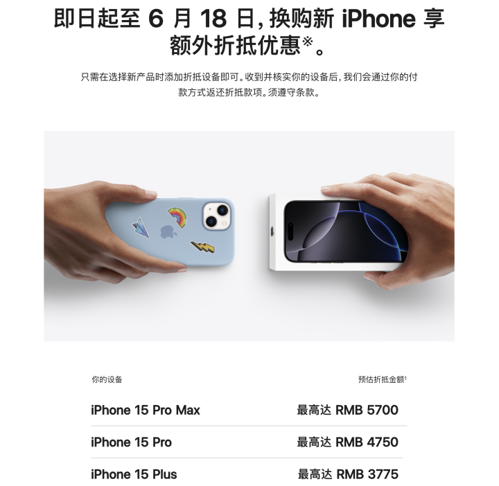 苹果公司宣布,自即日起至6月18日,开启特别换购活动,用户使用旧款iPhone换购新iPhone时,可享额外折抵优惠。