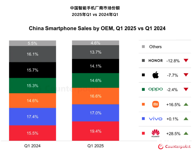 市场研究机构Counterpoint Research近日发布的有关2025年第一季度全球智能手机市场报告显示,2025年第一季度全球智能手机市场收入同比增长3%。