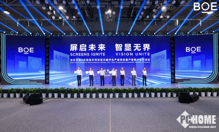 2025年5月26日,京东方成功举办主题为“屏启未来 智显无界”的量产交付活动,开启第6代新型半导体显示器件生产线由建设转向运营的崭新篇章。这不仅标志着京东方在LTPO、LTPS、Mini LED等高端显示领域实现跨越式突破,也为我国半导体显示产业注入强劲动能,加速助力北京打造国际科技创新中心。作为全球技术最先进、产能最大的VR用LCD生产基地,该生产线将充分发挥技术引领和产业集聚优势,进一步巩固京东方行业龙头地位,加速全球虚拟现实产业和数字经济发展。京东方科技集团董事长陈炎顺,京东方首席执行官冯强,京东方首席运营官王锡平,行业专家及生态伙伴出席现场仪式,共同见证这一荣耀时刻。