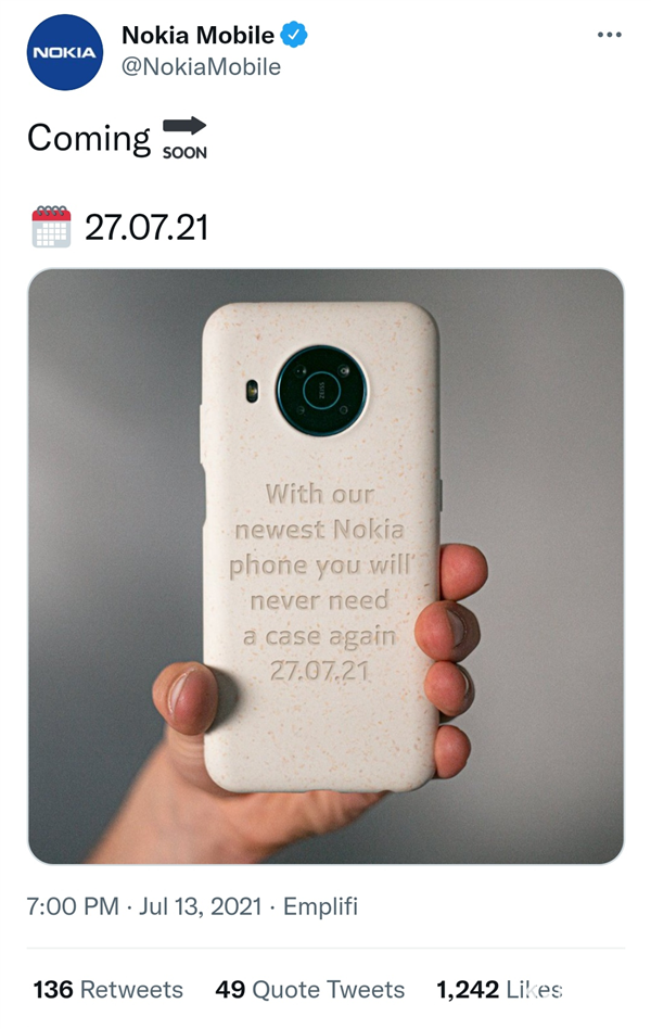 日前,诺基亚手机官方通过海外社交平台进行新机预热,宣布将于7月27日发布一款全新智能手机。